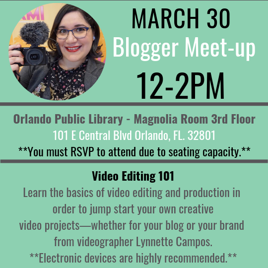 I was invited on behalf of the Orlando chapter of The Bloggers Union as a guest speaker twice—in March 2019 and February 2020—where I presented two workshop panels on video content production.